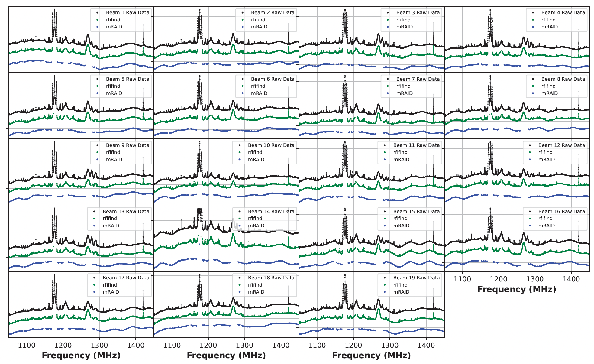 Figure 1. Comparison of RFI identification results between mRAID and rfifind for FAST 19-beam data.